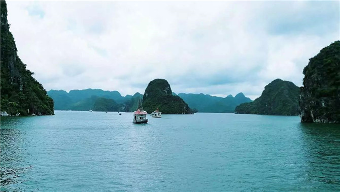 經(jīng)過長(zhǎng)達(dá)4個(gè)小時(shí)的車程,我們終于抵達(dá)傳說中的下龍灣,雖然天公不作美,但是豪華海景房的待遇也是杠杠的,不能海邊漫步,但是坐看窗外云卷云舒也別有一番滋味。不信,你看。