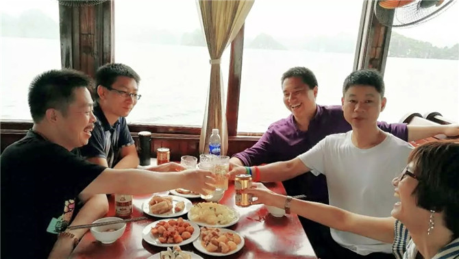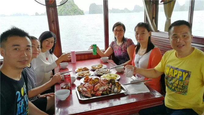 16日天氣轉(zhuǎn)晴,阿松說他們信奉燒香拜佛,前天晚上燒香至凌晨4點(diǎn)祈禱天氣晴朗讓我們?nèi)ンw驗(yàn)下龍灣的風(fēng)采,果然皇天不負(fù)有心人。于是18羅漢愉快地開啟了早餐時(shí)刻:越南的牛肉粉真的巨好吃,每個(gè)人至少只吃了3碗而已。